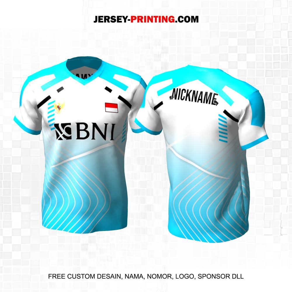 Jersey Badminton Biru Putih Motif Abstrak 138