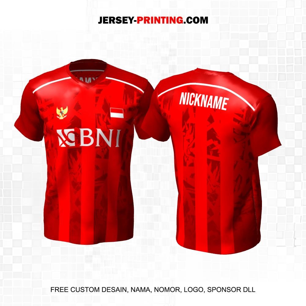 Jersey Badminton Merah Motif Abstrak 139
