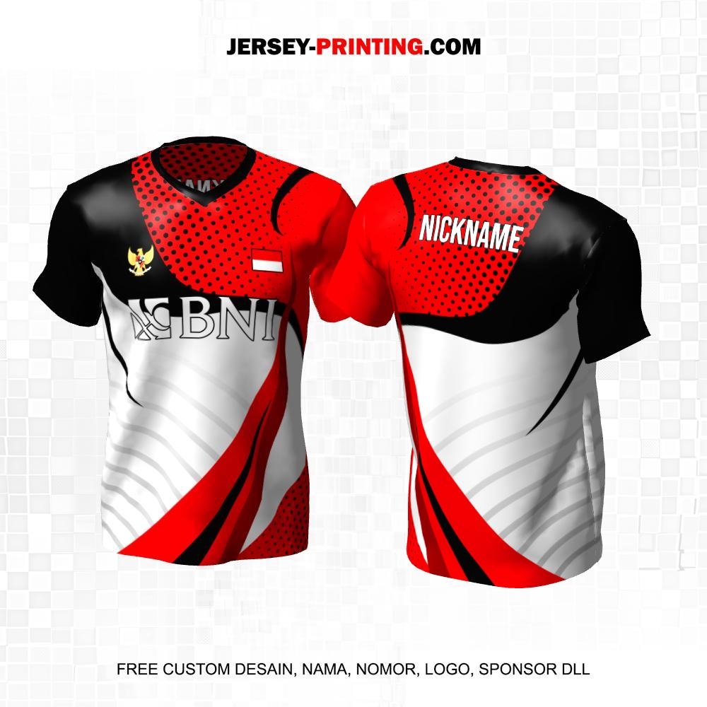Jersey Badminton Merah Putih Hitam Motif Abstrak Polkadot 144