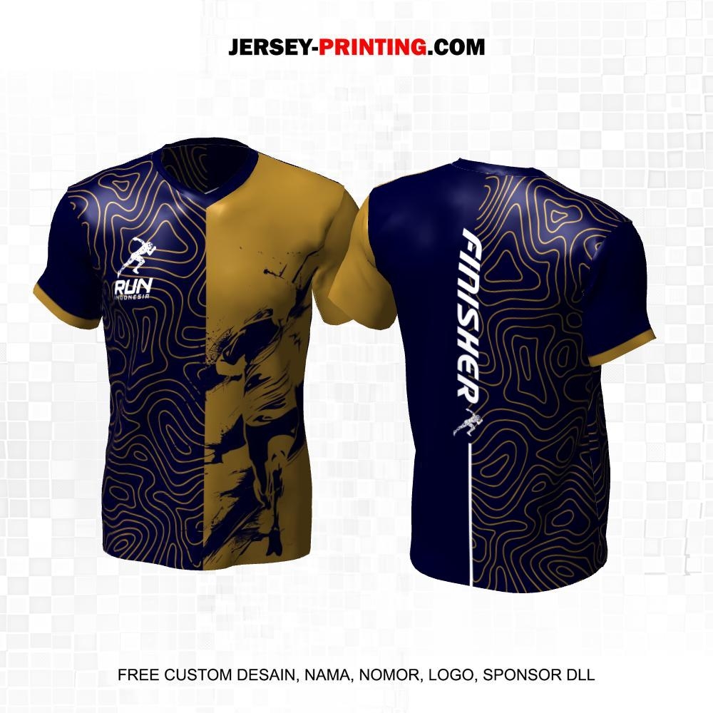 Jersey Lari Navy Coklat Motif Abstrak Liquid 241