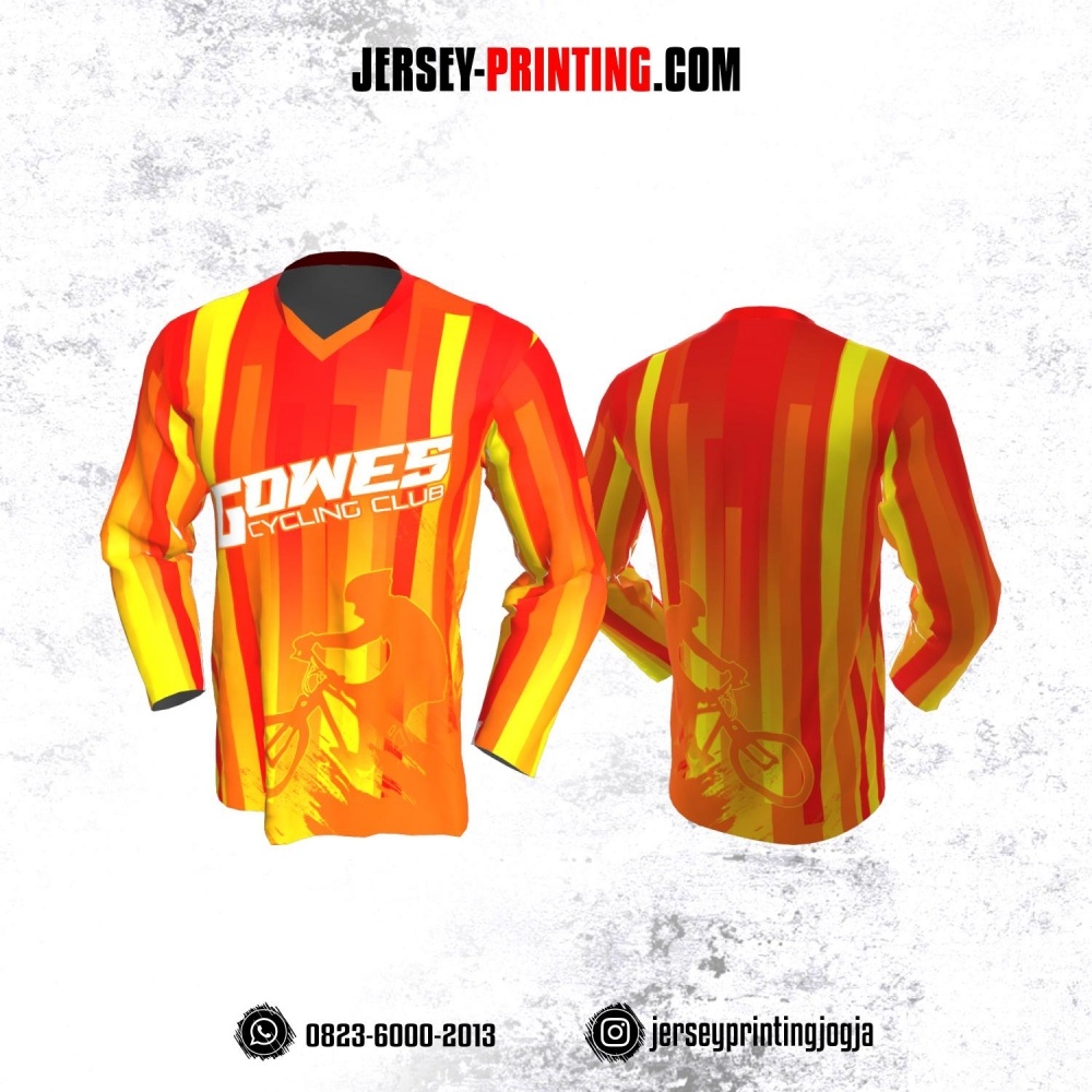 Jersey Gowes Sepeda Orange Merah Kuning Strip Lengan Panjang