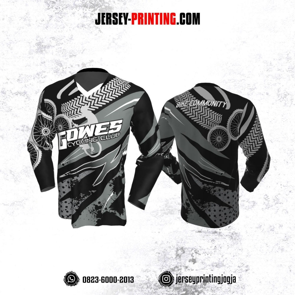 Jersey Gowes Sepeda Abu Hitam Putih Kilat Lengan Panjang