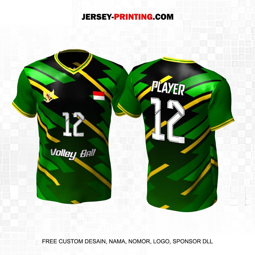 Jersey Volly Hijau Hitam Kuning Motif Abstrak 235