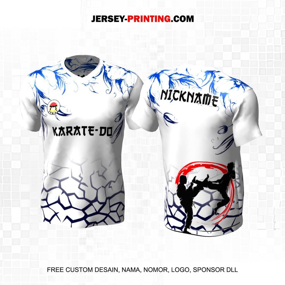 Jersey Karate Putih Biru Motif Abstrak Flower 165