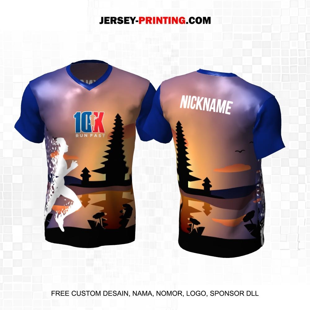 Jersey Lari Biru Orange Motif Pemandangan Alam & Bangunan Pura 258