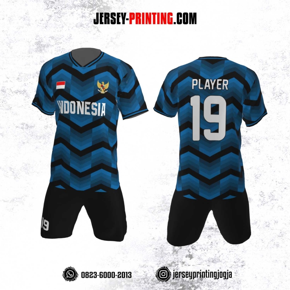 Jersey Futsal Motif Zigzag Hitam Biru