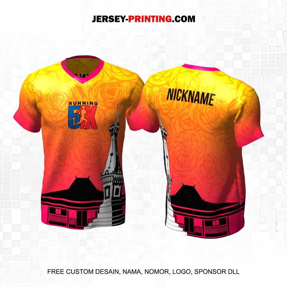 Jersey Lari Pink Kuning Motif Mawar Joglo Tugu Jogja 277