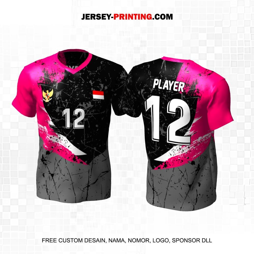 Jersey Volly Pink Hitam Abu Motif Abstrak 305