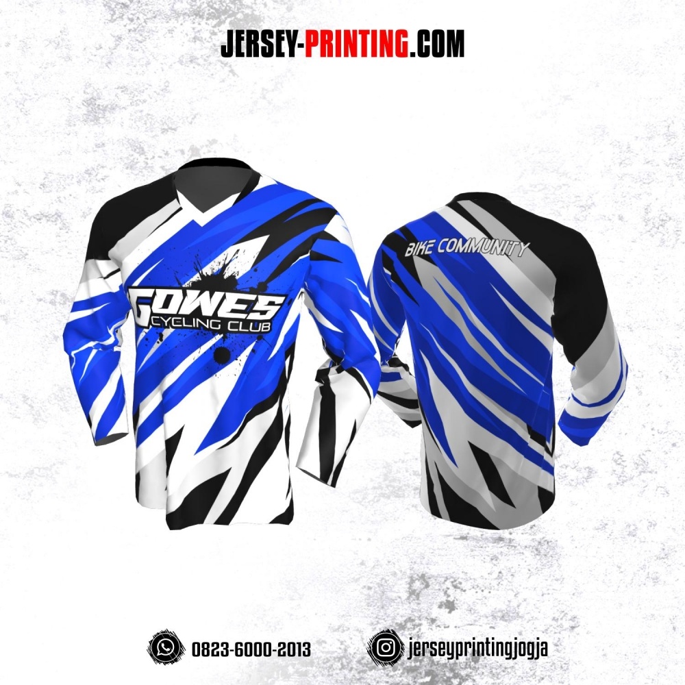 Jersey Gowes Sepeda Biru Putih Hitam Abstrak Lengan Panjang