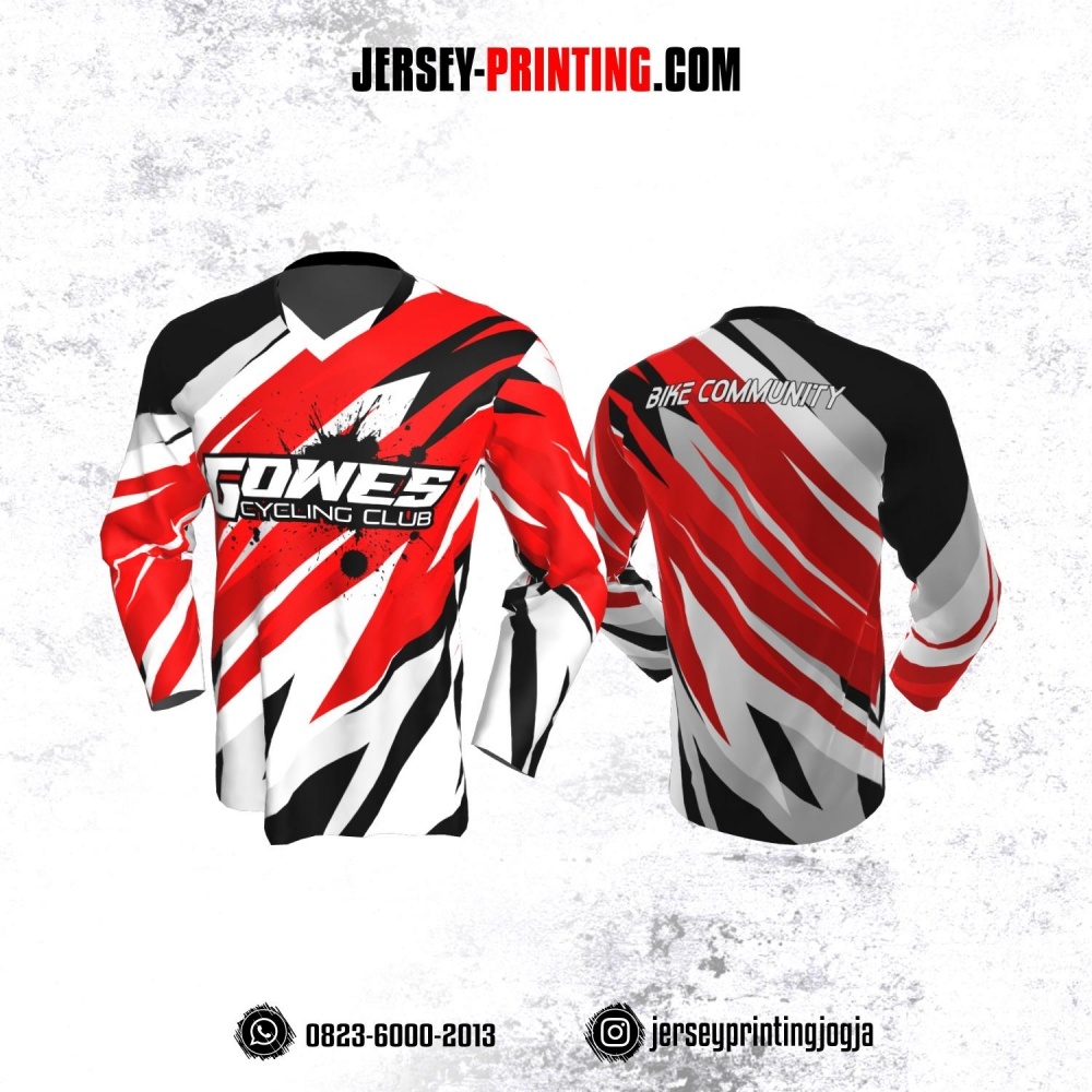 Jersey Gowes Sepeda Merah Putih Hitam Abstrak Lengan Panjang