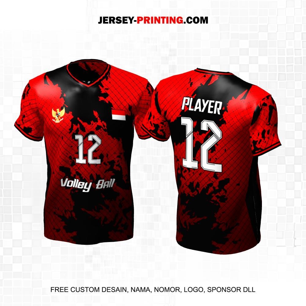 Jersey Volly Merah Hitam Motif Abstrak 315