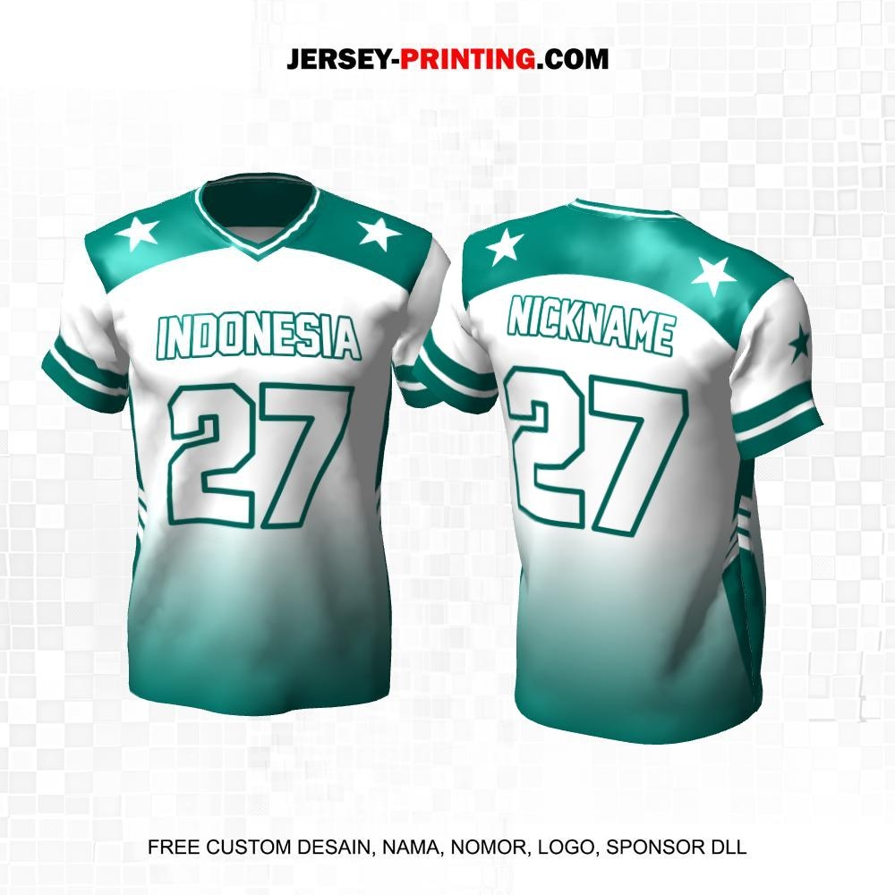 Jersey Futsal Retro Vintage Gradasi Hijau Putih Motif Bintang 470