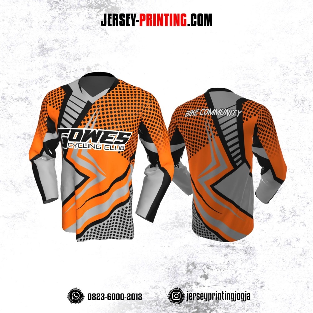 Jersey Gowes Sepeda Orange Abu Hitam Polkadot Lengan Panjang