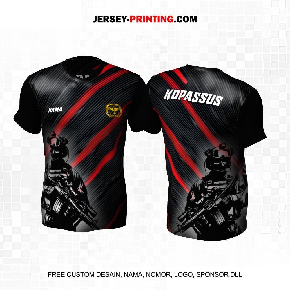Jersey Kopassus Tentara TNI AD Angkatan Darat Hitam Merah Motif Garis 04