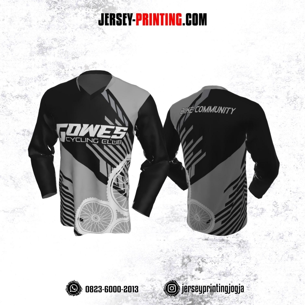 Jersey Gowes Sepeda Abu Hitam Putih Roda Lengan Panjang