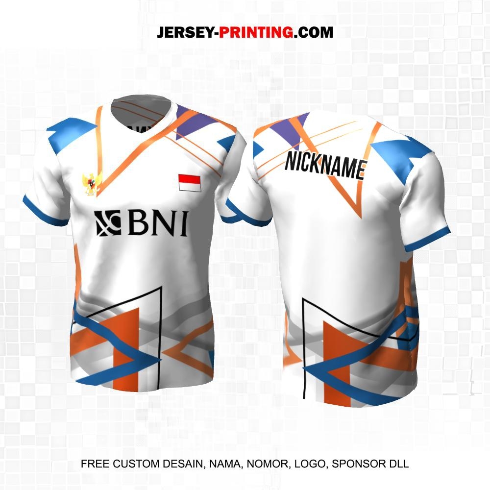 Jersey Badminton Putih Warna Warni Motif Abstrak 158