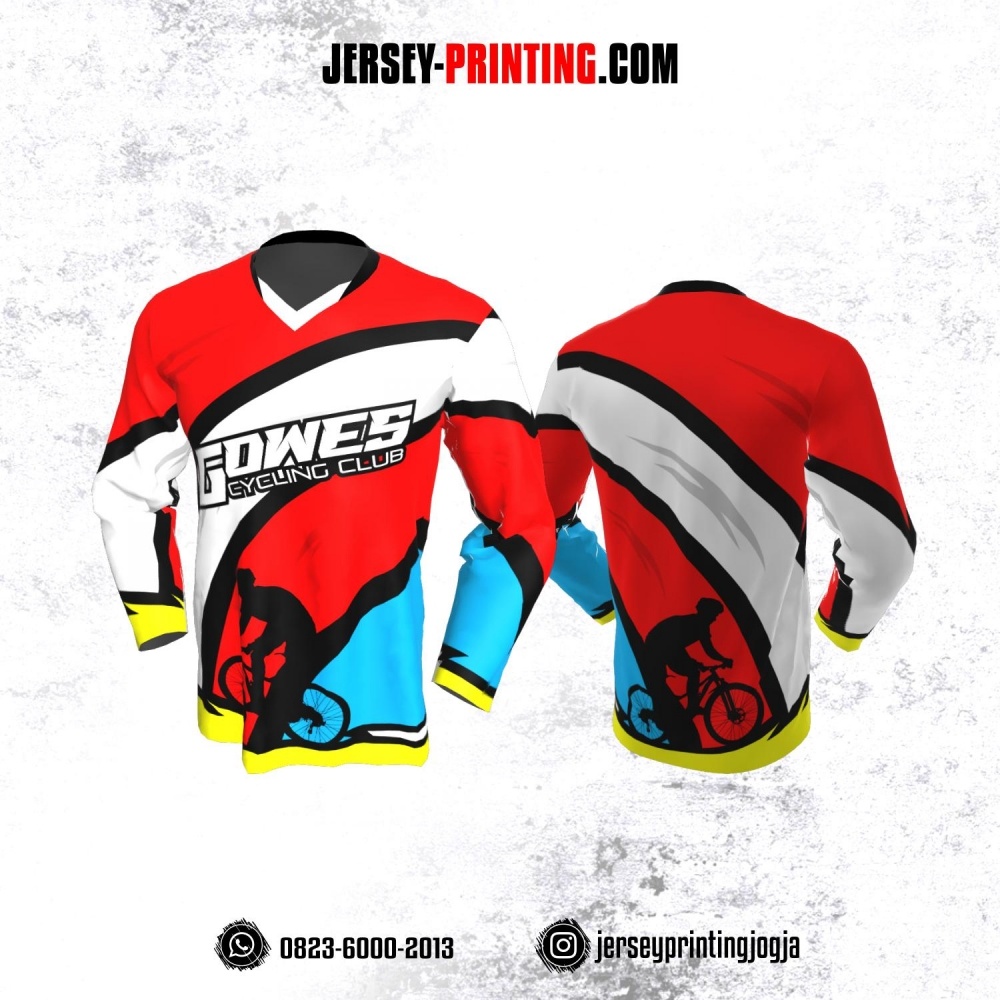 Jersey Gowes Sepeda Merah Putih Hitam Lengan Panjang