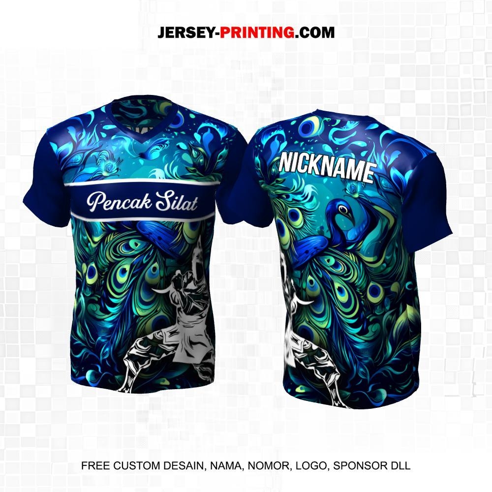 Jersey Pencak Silat Biru Hijau Motif Merak 283