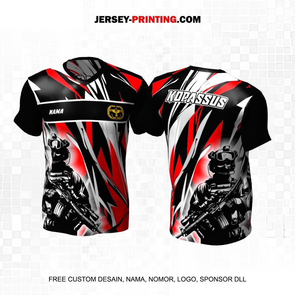 Jersey Kopassus Tentara TNI AD Angkatan Darat Hitam Merah Putih Motif Abstrak 05