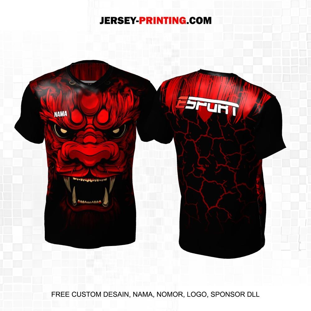 Jersey Gaming Esports Hitam Merah Motif Retak Barong 147