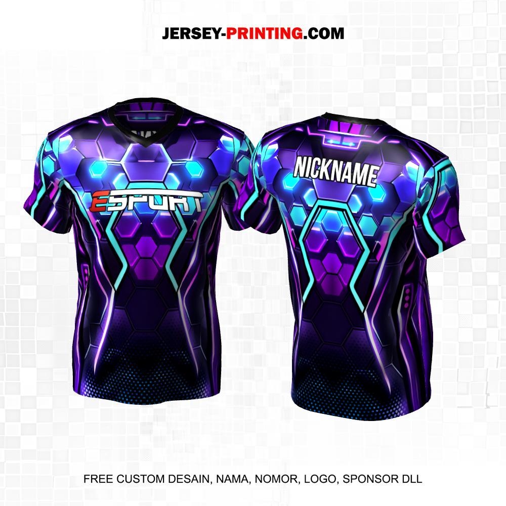 Jersey Gaming Esports Hitam Ungu Motif Abstrak Honeycomb 151