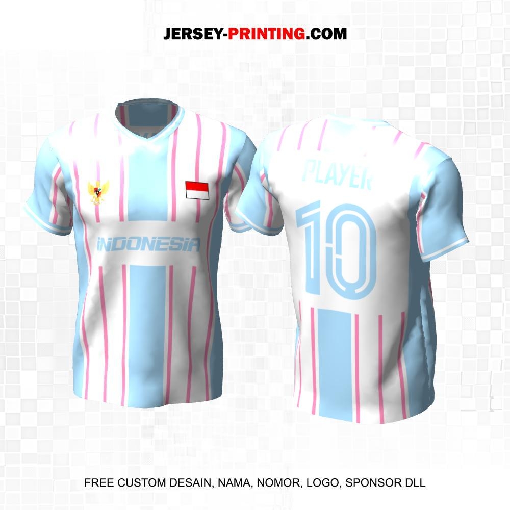 Jersey Futsal Putih Biru Pink Motif Garis 509