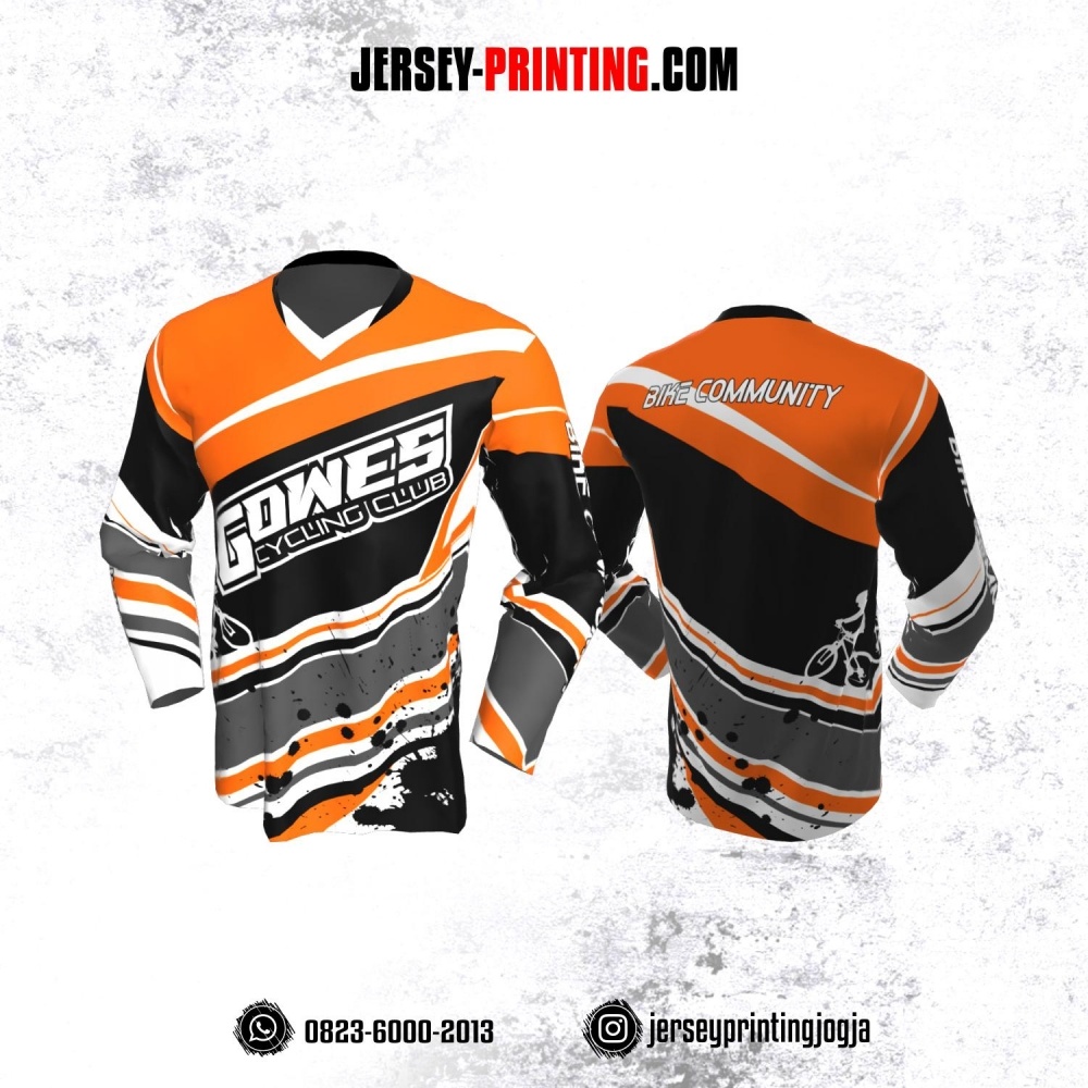 Jersey Gowes Sepeda Orange Hitam Abu Putih Lengan Panjang