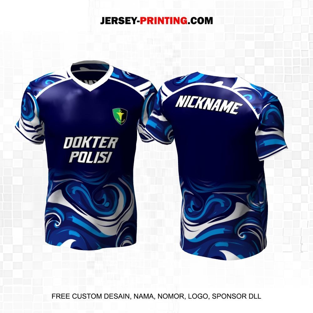 Jersey Dokter Polisi Biru Navy Putih Motif Abstrak Liquid 20