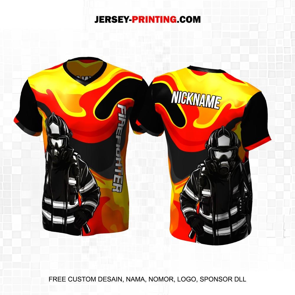 Jersey Damkar Pemadam Kebakaran Hitam Merah Kuning Motif Abstrak 38