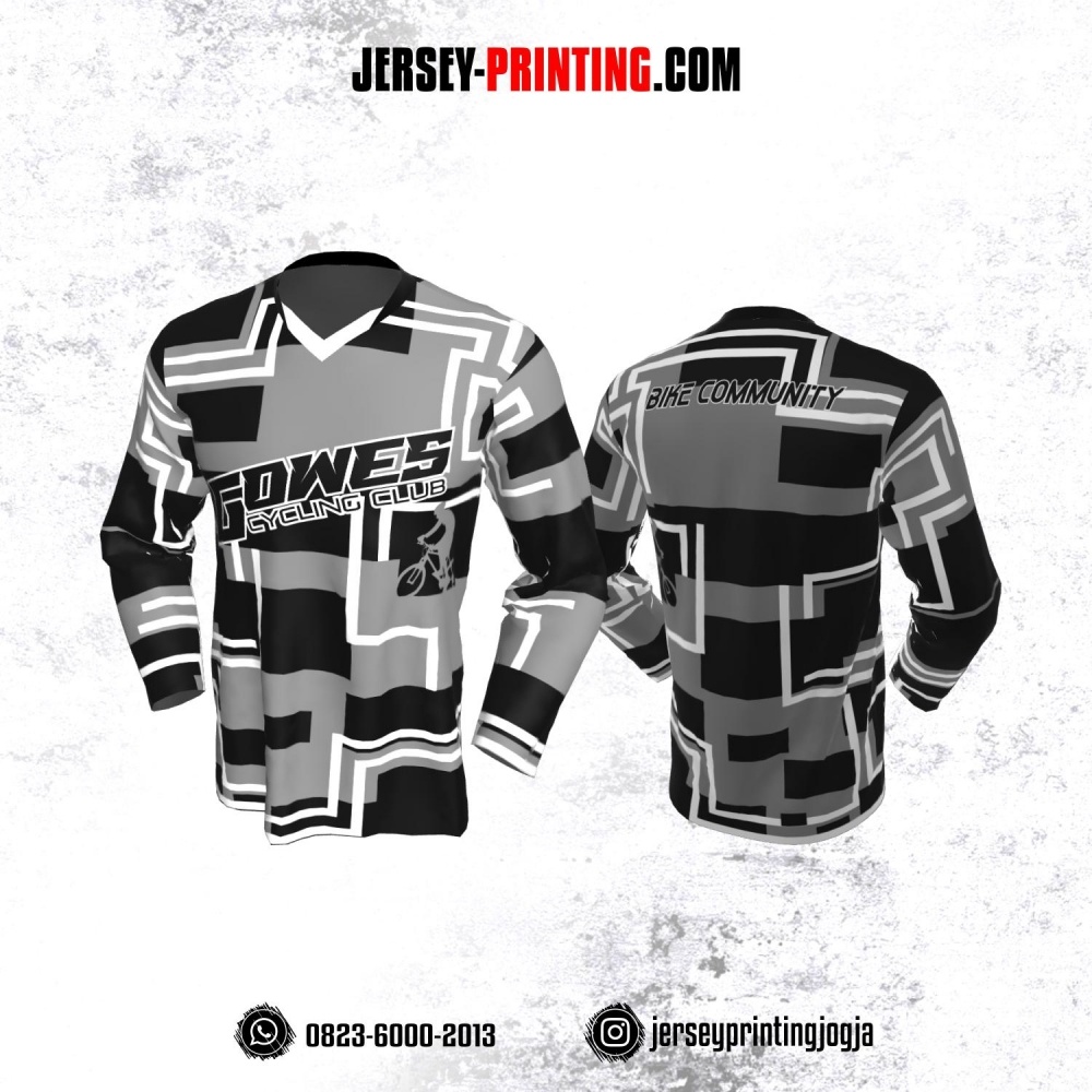 Jersey Gowes Sepeda Hitam Abu Putih Line Lengan Panjang