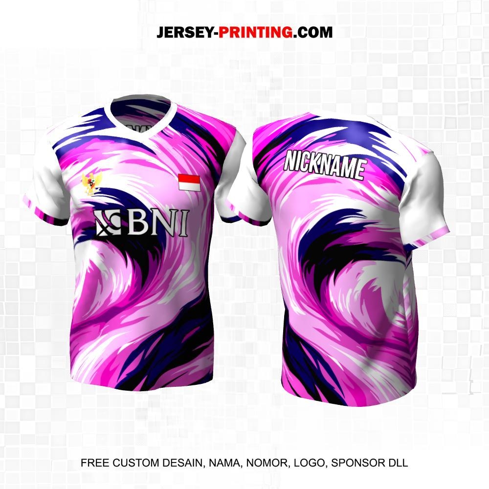 Jersey Badminton Pink Putih Navy Motif Abstrak 160