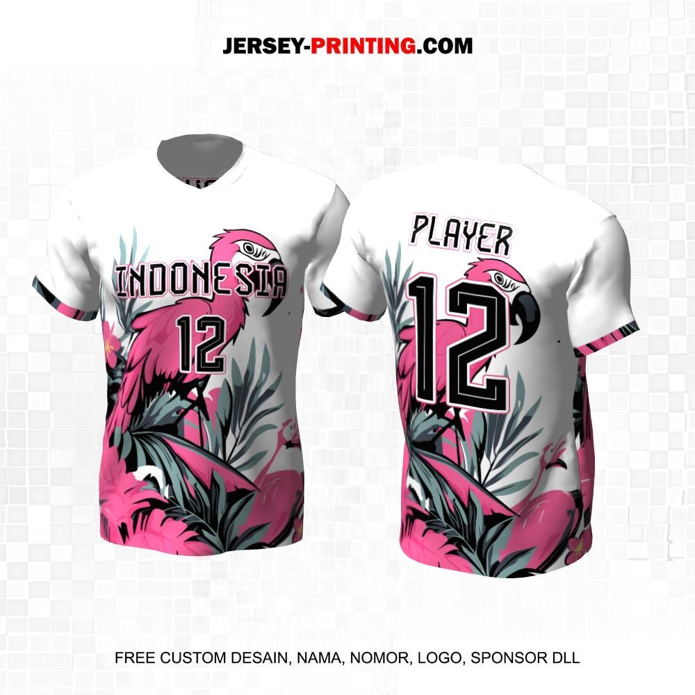 Jersey Basket Putih Pink Motif Flamingo 113