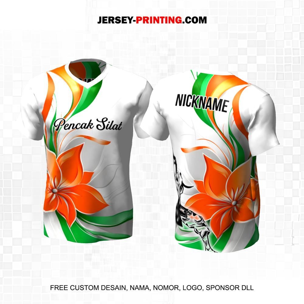 Jersey Pencak Silat Putih Orange Hijau Motif Flower 295