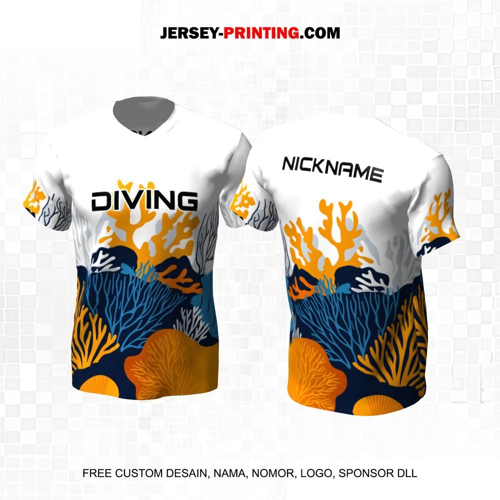 Jersey Penyelam Putih Navy Orange Motif Bawah Laut 15