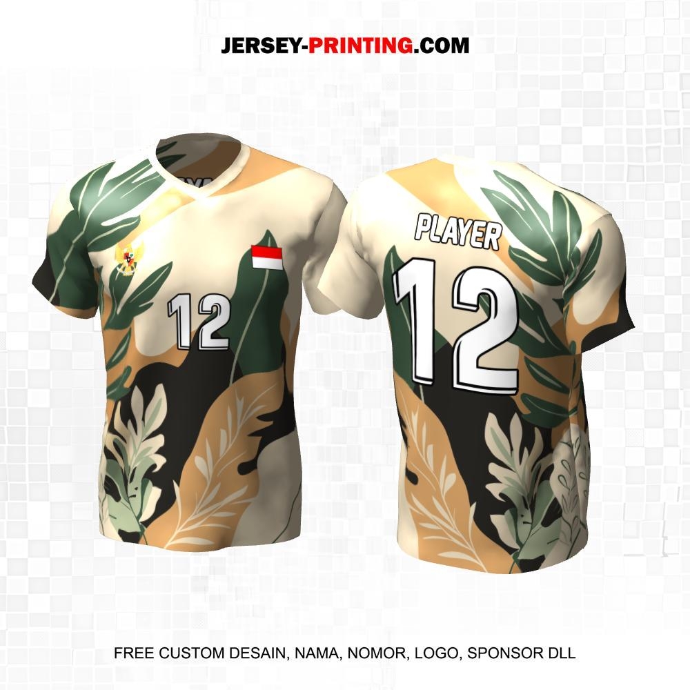 Jersey Volly Krem Hijau Motif Flora 381