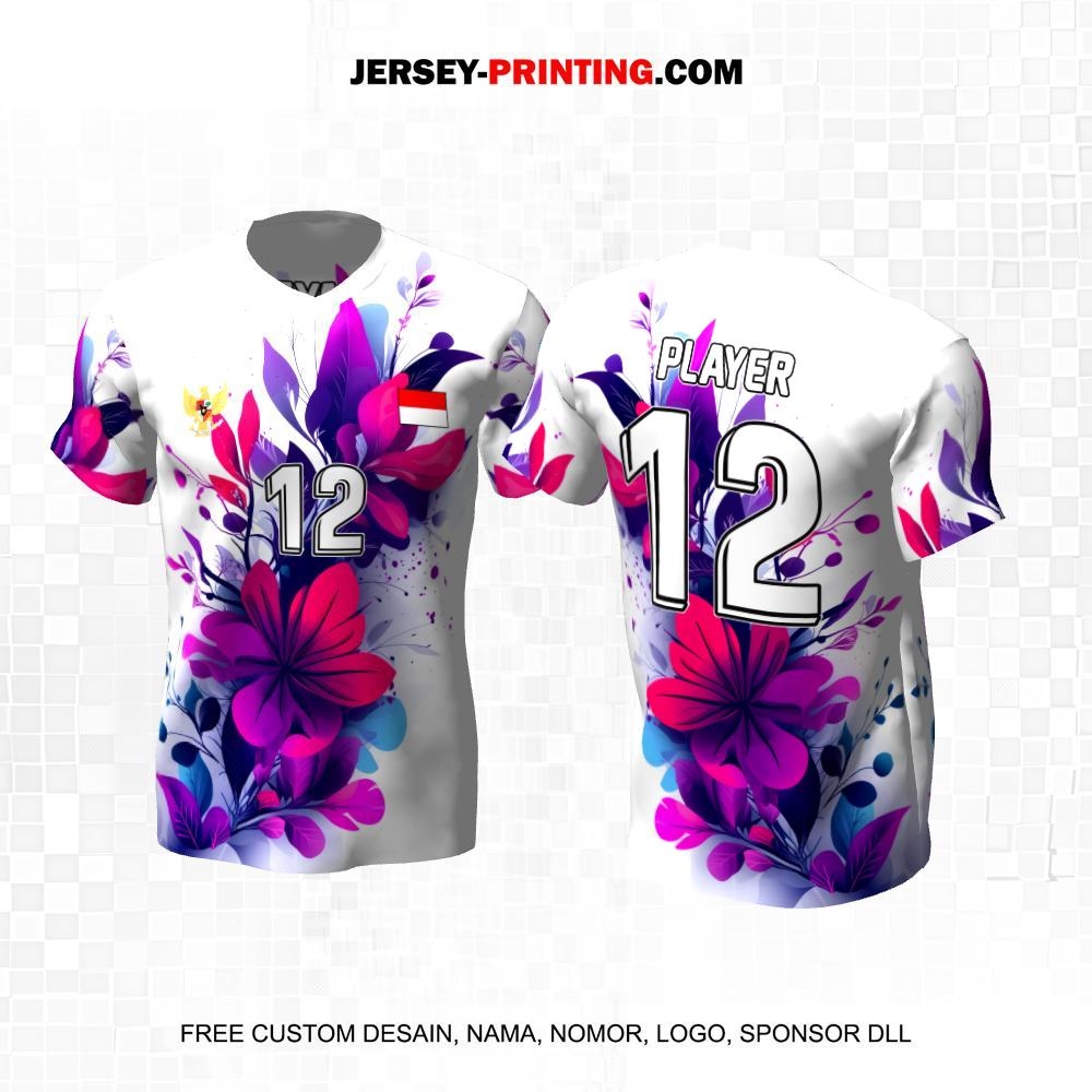 Jersey Volly Putih Ungu Motif Flower 383