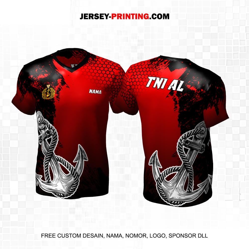 Jersey Militer Tentara TNI AL Angkatan Laut Merah Hitam Motif Jangkar Abstrak Honeycomb 02