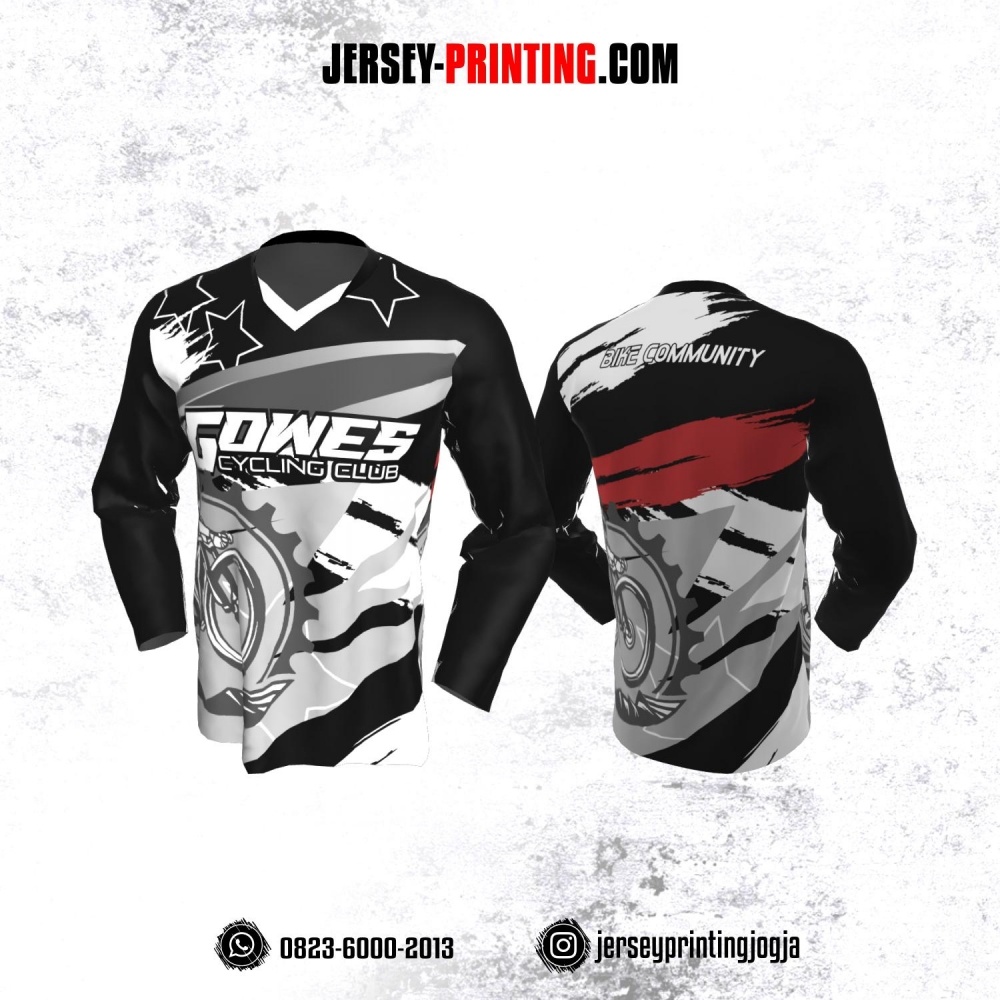 Jersey Gowes Sepeda Abu Hitam Putih Merah Brush Lengan Panjang