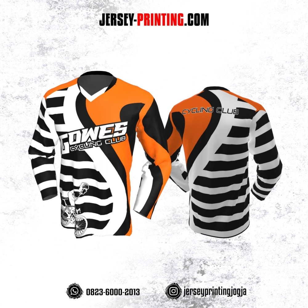 Jersey Gowes Sepeda Hitam Putih Orange Strip Lengan Panjang