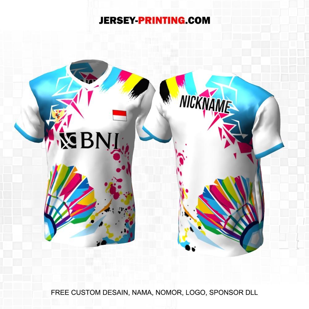 Jersey Badminton Putih Biru Pink Motif Abstrak 164
