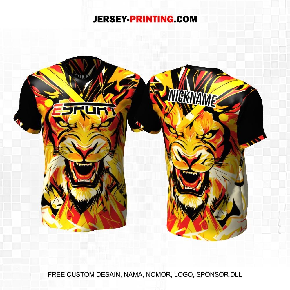 Jersey Gaming Esports Kuning Hitam Merah Motif Singa 196