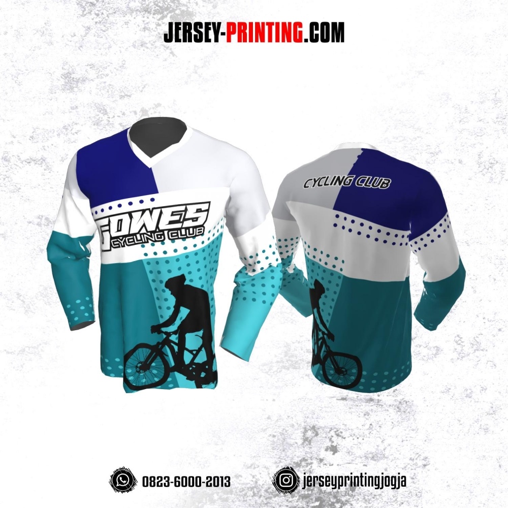 Jersey Gowes Sepeda biru Aqua Tosca Navy Putih Polkadot Lengan Panjang