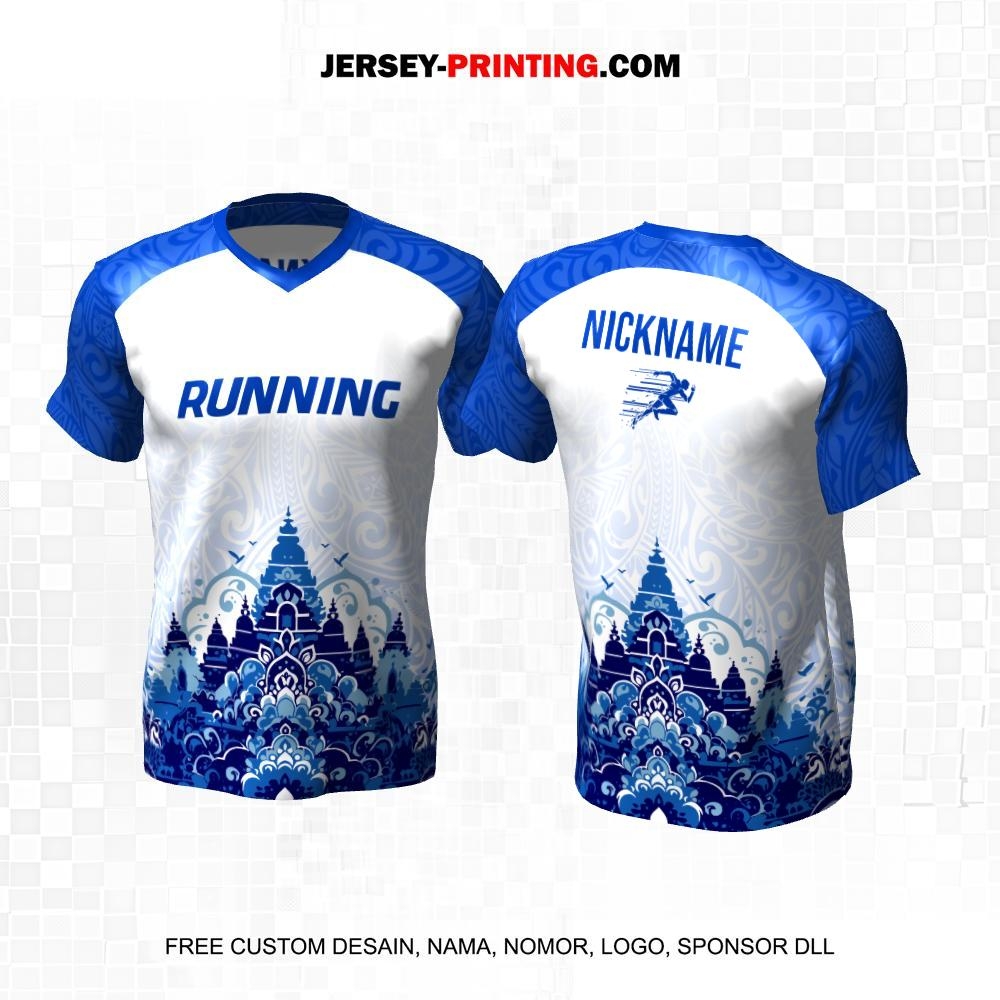 Jersey Lari Putih Biru Motif Batik Candi 383