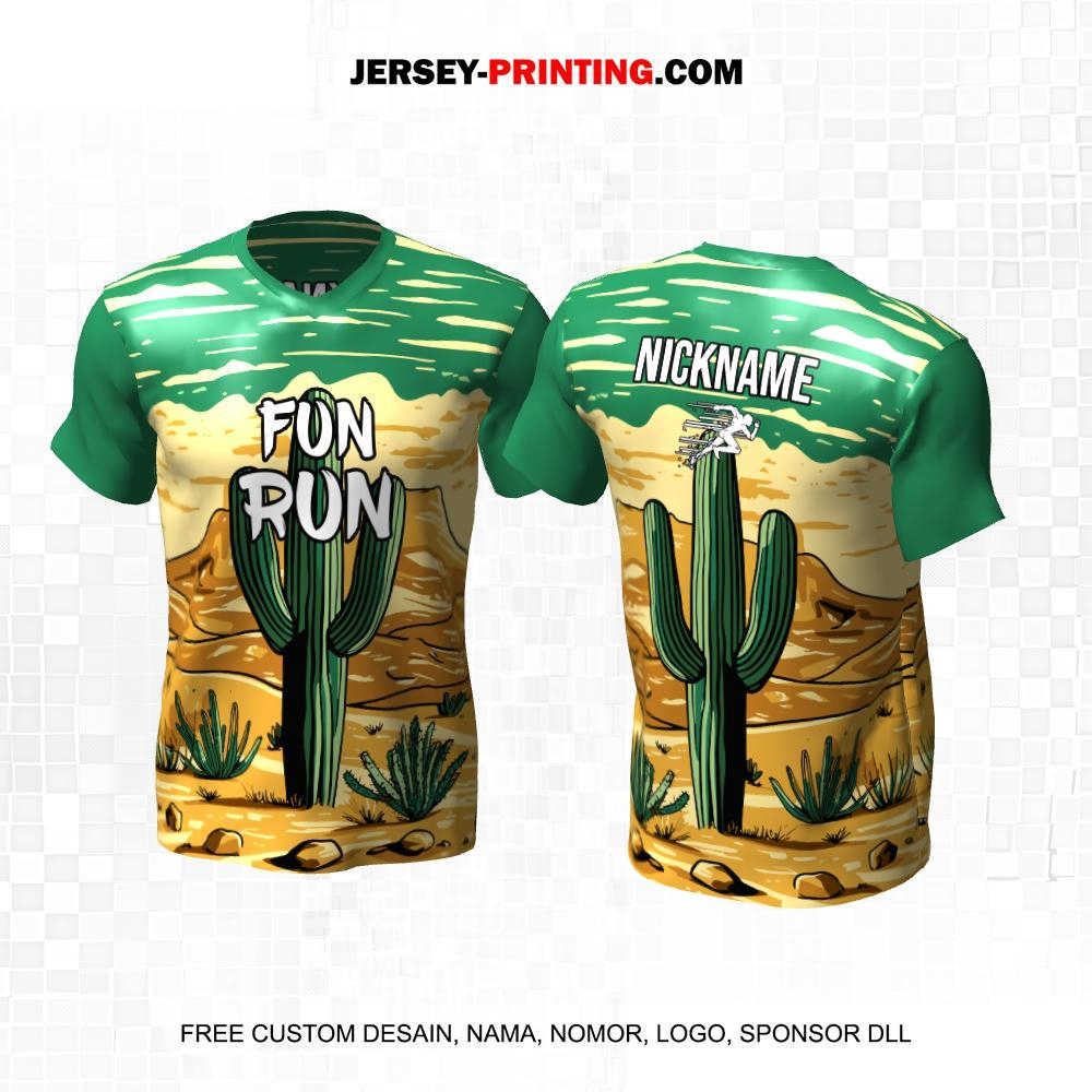 Jersey Lari Hijau Coklat Motif Kaktus 385