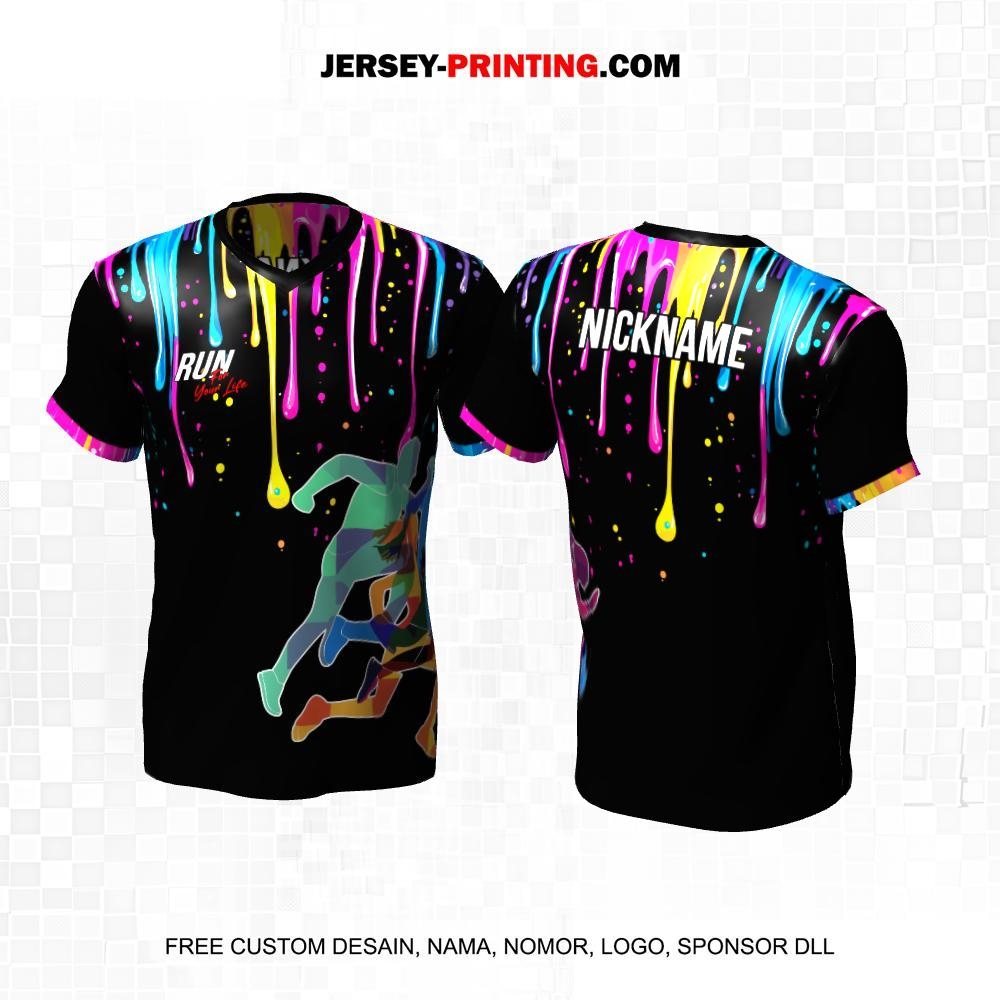 Jersey Lari Hitam Warna Warni Motif Lelehan 388