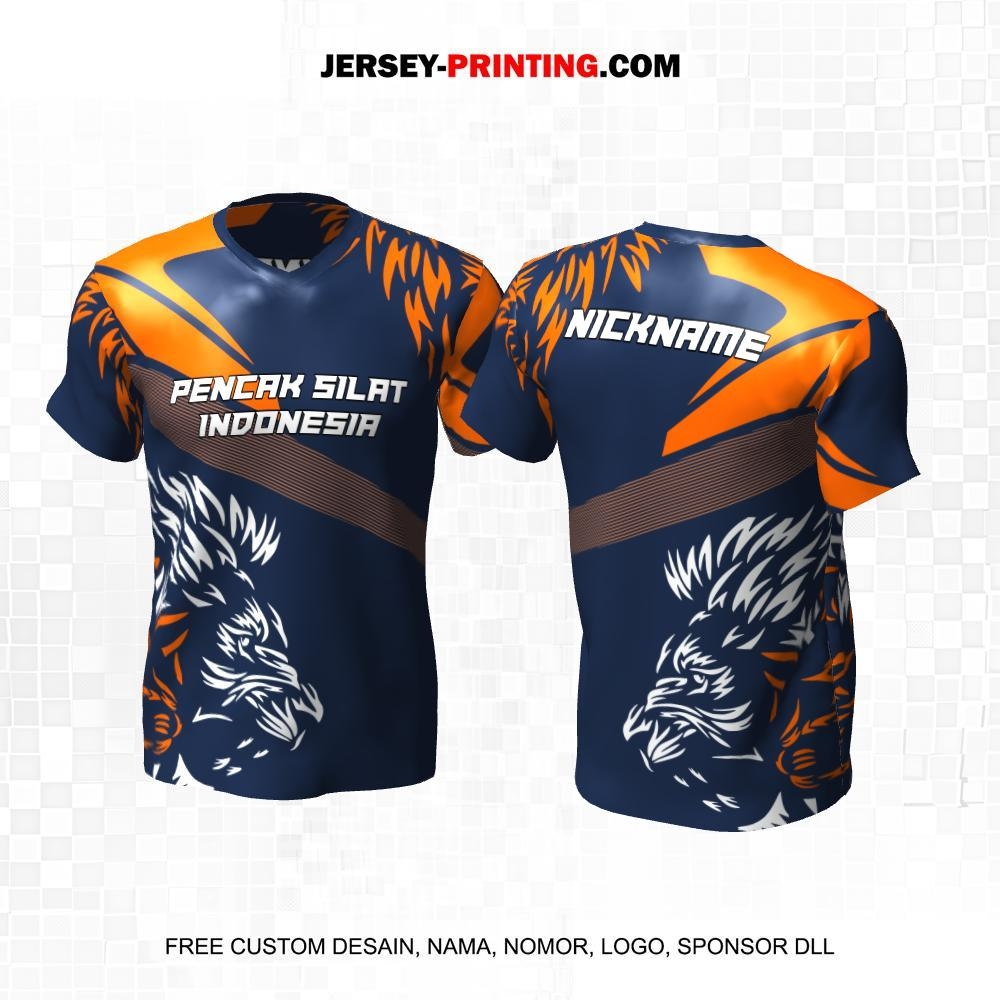 Jersey Pencak Silat Navy Orange Motif Abstrak Singa 319