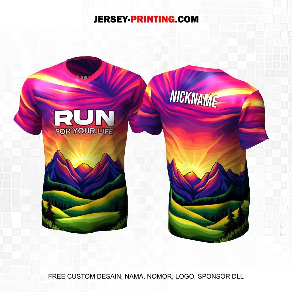Jersey Lari Warna Warni Motif Pemandangan Alam Gunung 395