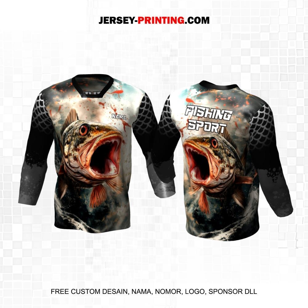 Jersey Mancing Fishing Angler Hitam Abu Motif Abstrak 15