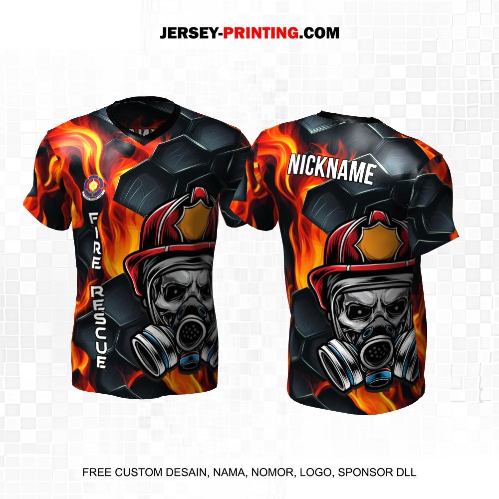 Jersey Damkar Pemadam Kebakaran Hitam Abu Orange Motif Api Honeycomb 52