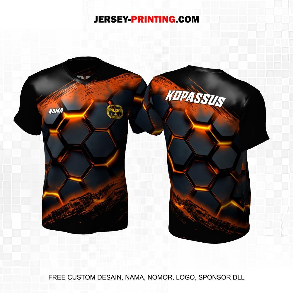 Jersey Kopassus Tentara TNI AD Angkatan Darat Hitam Orange Motif Brush Honeycomb 45